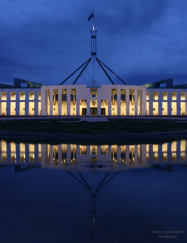 A lovely evening photographing Parliament House. Blue hour providing a stunning backdrop for this amazing building.